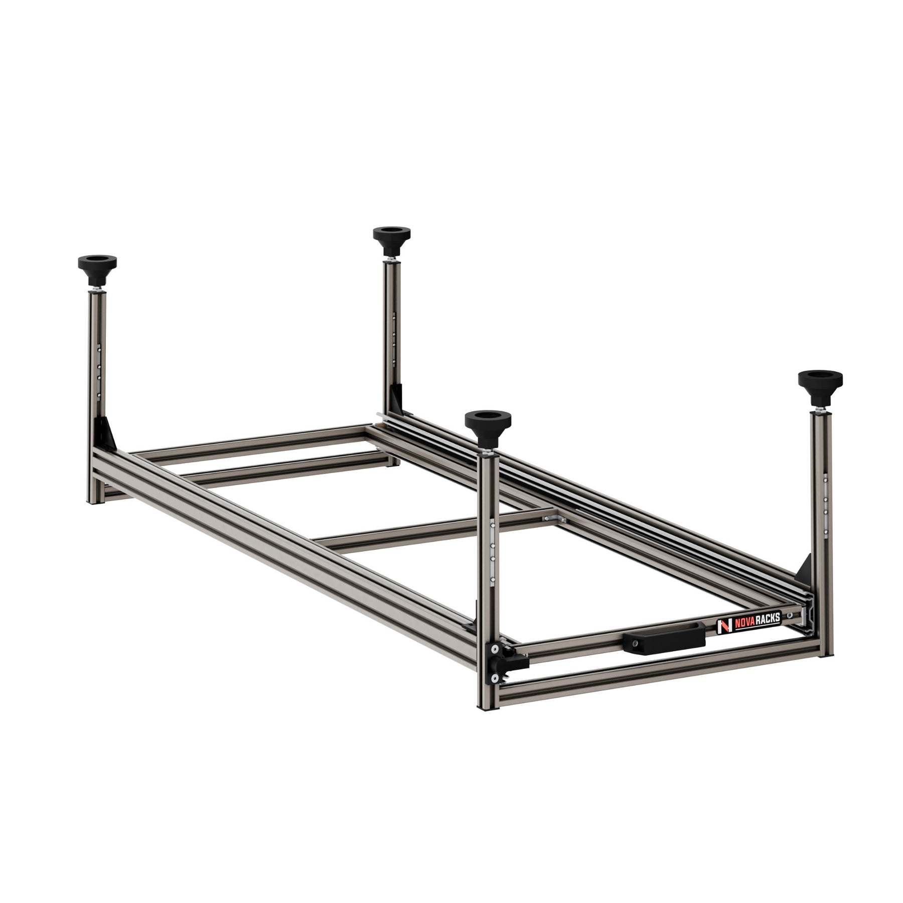 Fixation is done by compression, without drilling or modifying the vehicle, ensuring a clean, reversible installation that respects double-floor constraints.